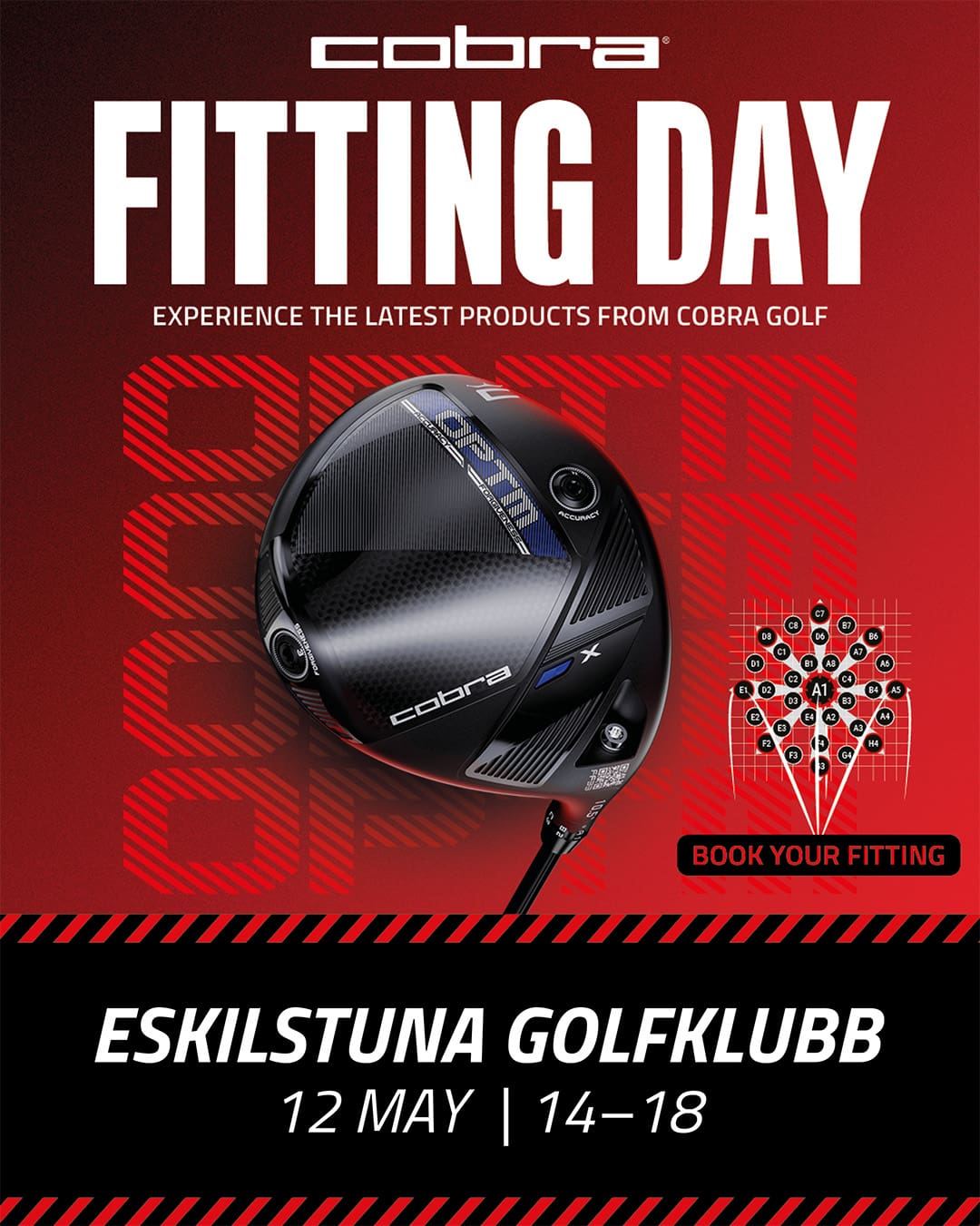Tisdag den 12 maj har vi besök av Cobra, som erbjuder custom fitting här på Eskilstuna Golfklubb. Under 30 minuter får du personlig hjälp av deras experter att hitta de klubbor som passar din spelstil och nivå – oavsett om du är nybörjare eller rutinerad golfare.