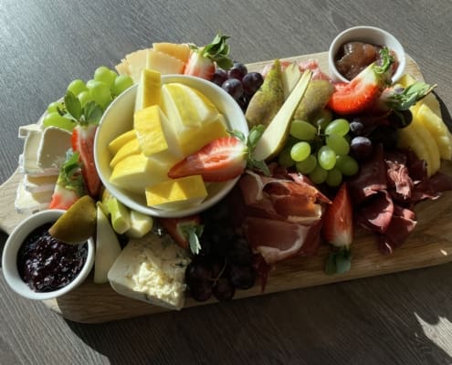 Förboka gärna vår charkbricka som kostar 399 kronor och som passar för 2-4 personer och innehåller – bresaola, lufttorkad skinka, salami milano eller chorizo, manchego, brie, ädelost, marmelad och frukt samt kex, fröknäcke och bondbröd. Det går med fördel att även förbeställa dryck som står inne på rummet vid ankomst. Maila din förbokning till info@eskilstunagk.se.